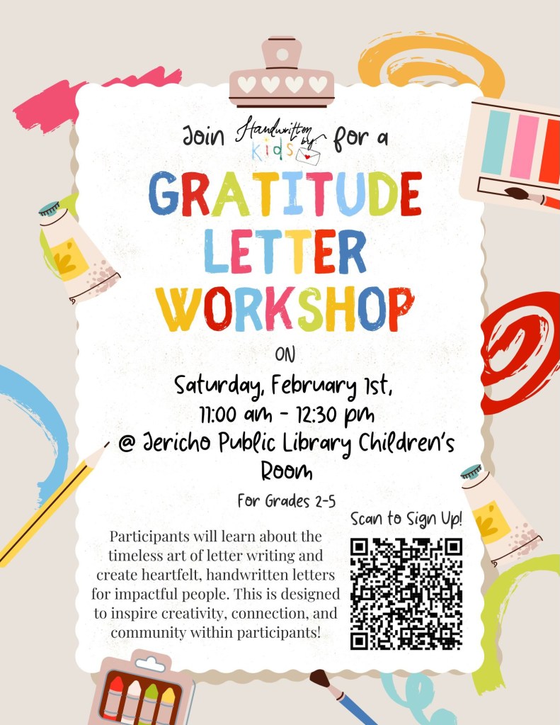 Want to make someone’s day with just your words? 💌 Join our live workshop on February 1st, 2025, to write heartfelt gratitude letters to local heroes—big and small! From firefighters and teachers to neighbors and friends, let’s celebrate those who make a difference. Discover the power of appreciation and creativity while spreading joy. Let’s brighten the world, one letter at a time! ❤️✨